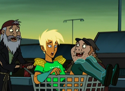 | Xandir has a romantic encounter with Captain Hero's alter ego Tim. Drawn Together receives an "F" from Entertainment Weekly. | ||||